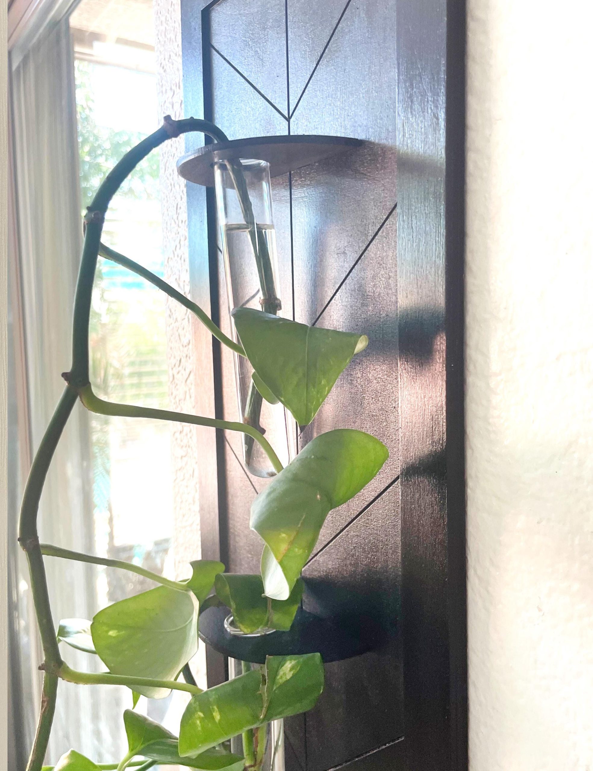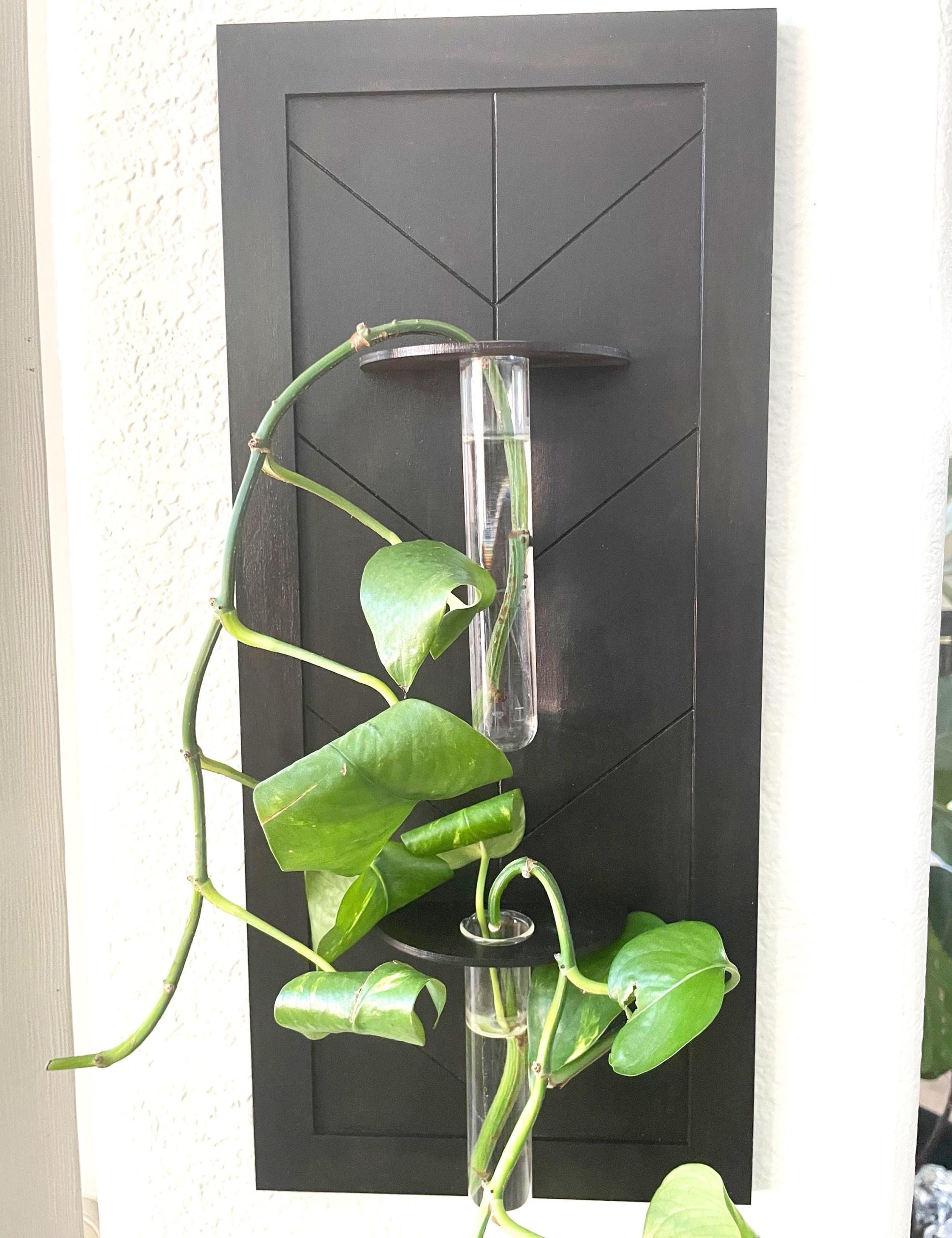 Elevate your space with this stunning wooden plant propagation station, designed to be a standout piece in any room. Personalize the color to complement your decor and simply add your favorite plant cuttings to transform a dull wall or nook into a warm and inviting display. This rustic yet modern station features a laser-cut arrow pattern and can be purchased with two clear glass tubes, making it the perfect solution for rooting plant cuttings in style.