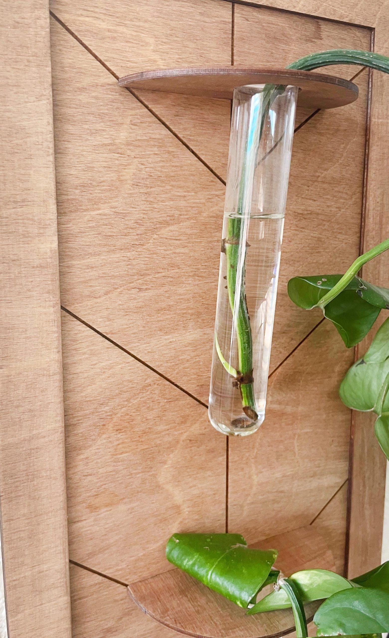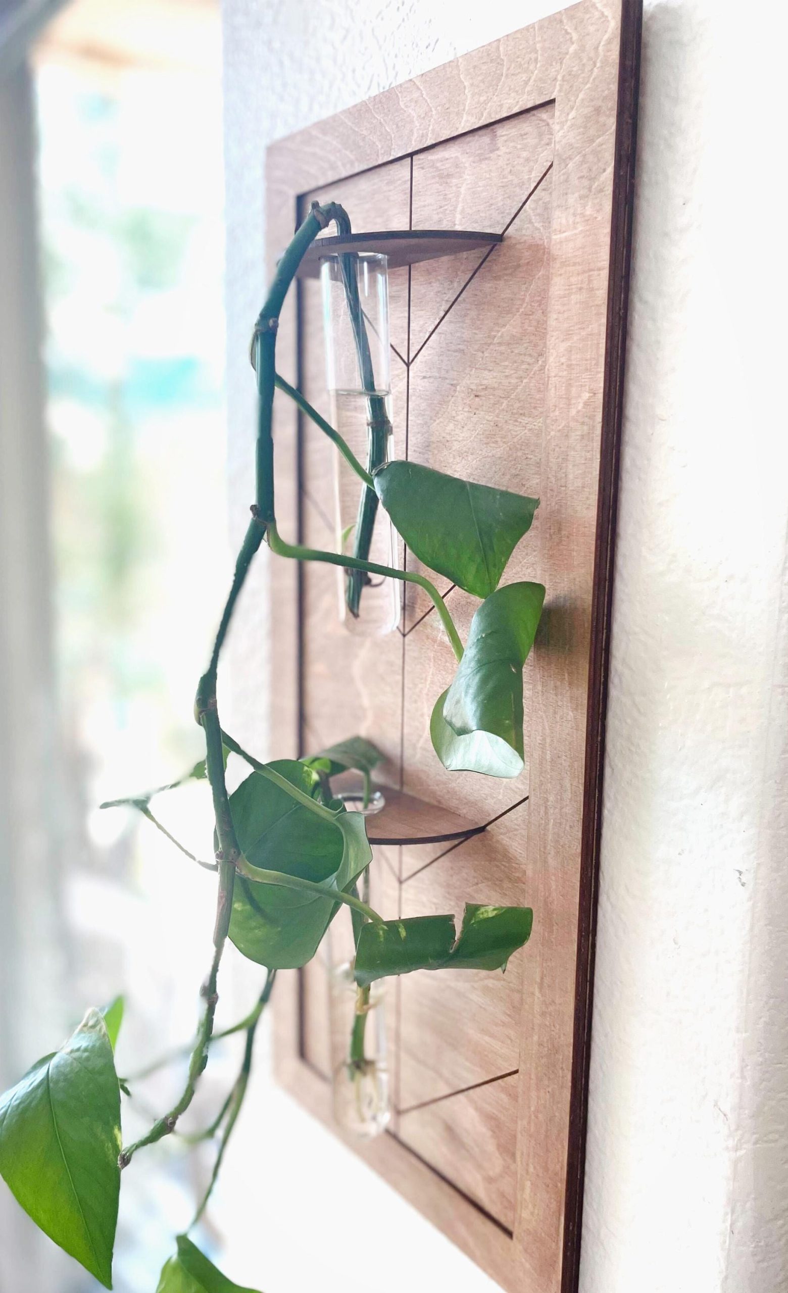 Modern Wooden Wall Plant Propagation Station, Geometric Design Wall Art For Plant Cutting, Two Glass Tubes Optional, Home Decor For Plant Lover