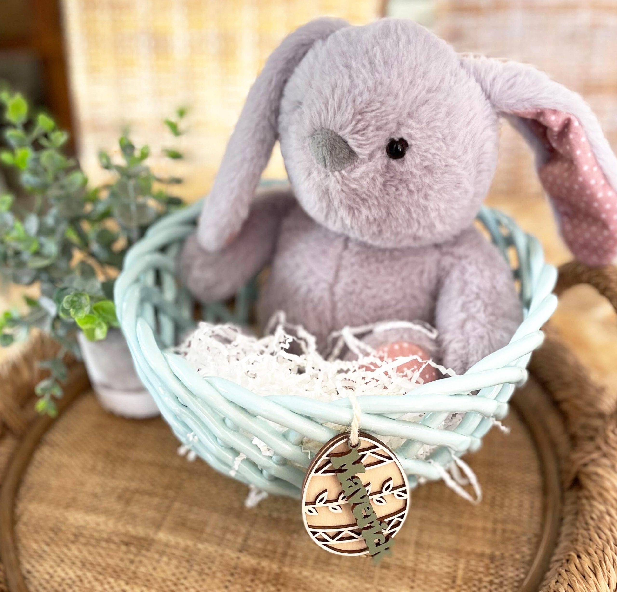 Personalized Easter Egg Basket Tag: Layered Wood, Custom Name