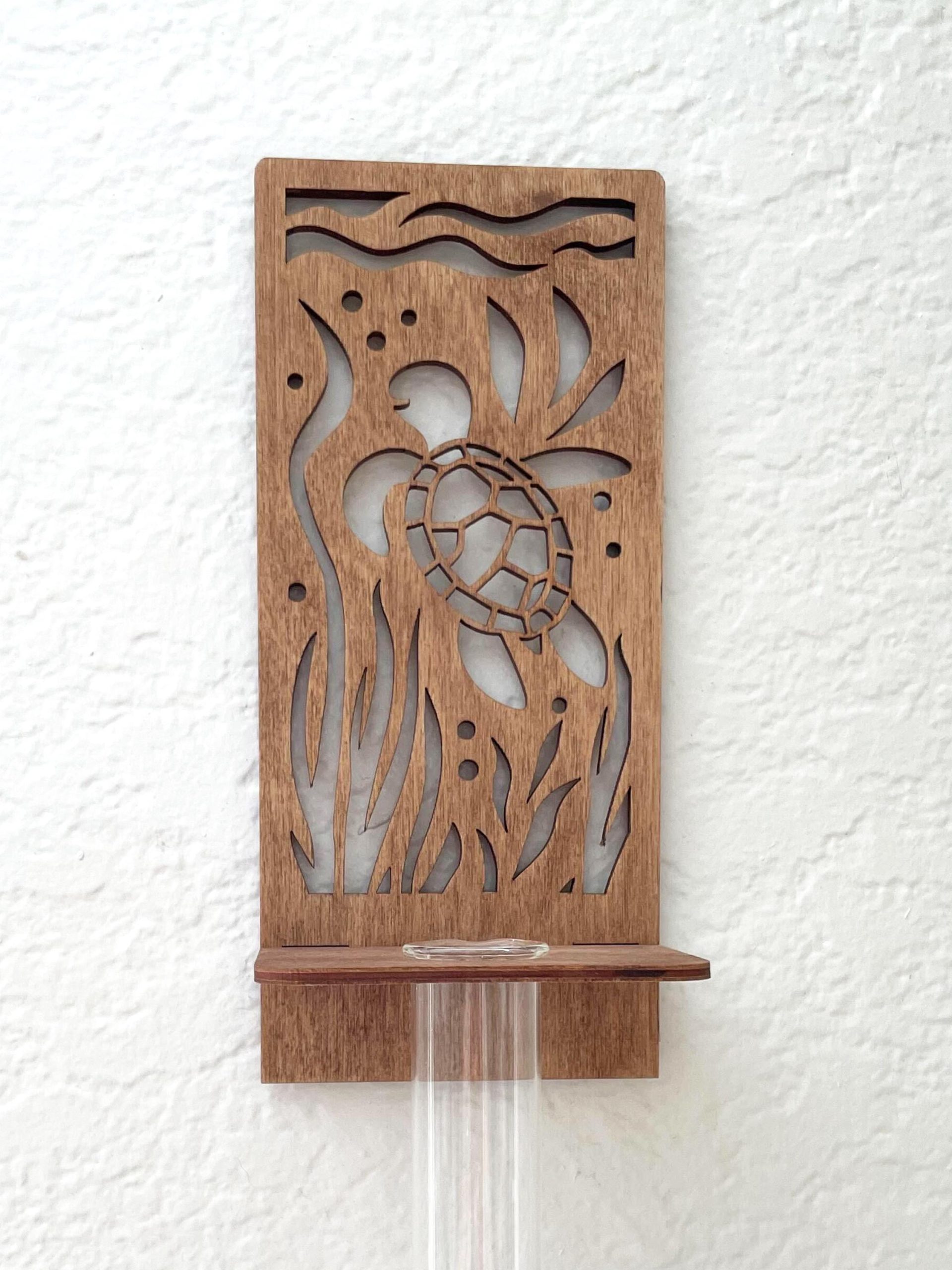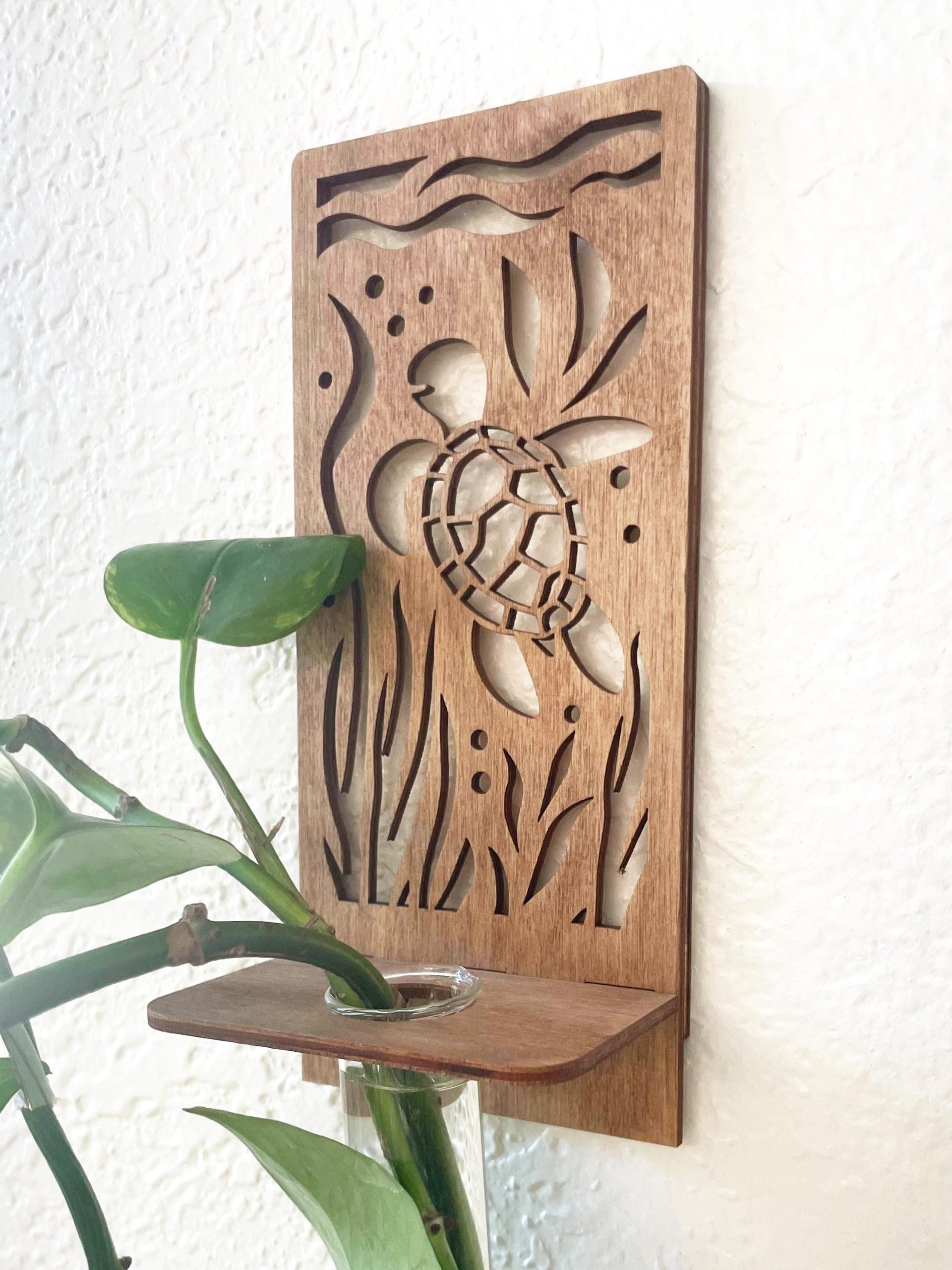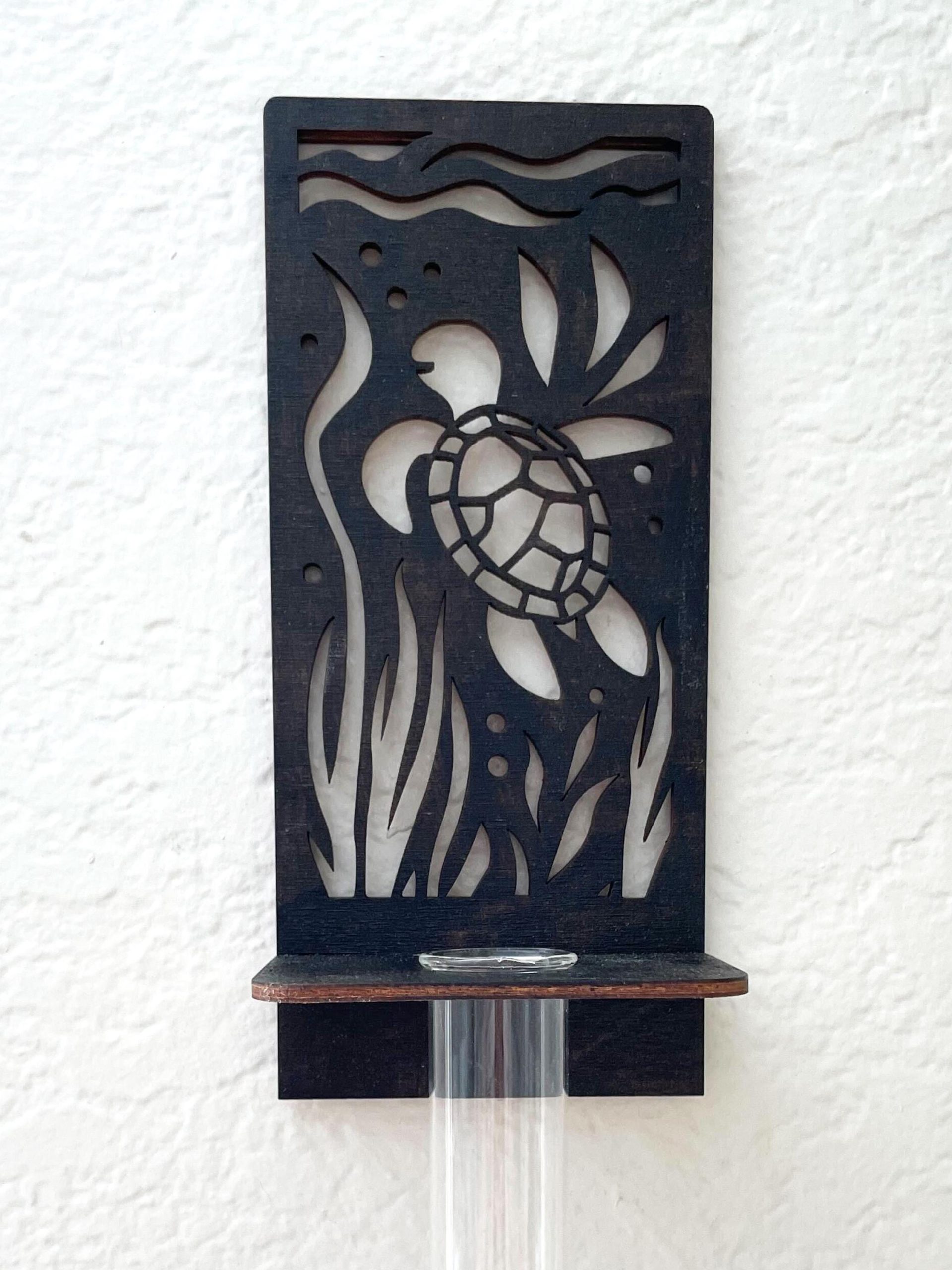 Sea Turtle Wall Propagation Station, Plant Propagator, Beachy Ocean, Glass Tube Included, Choose Your Stain Color, Plant Cutting Vase