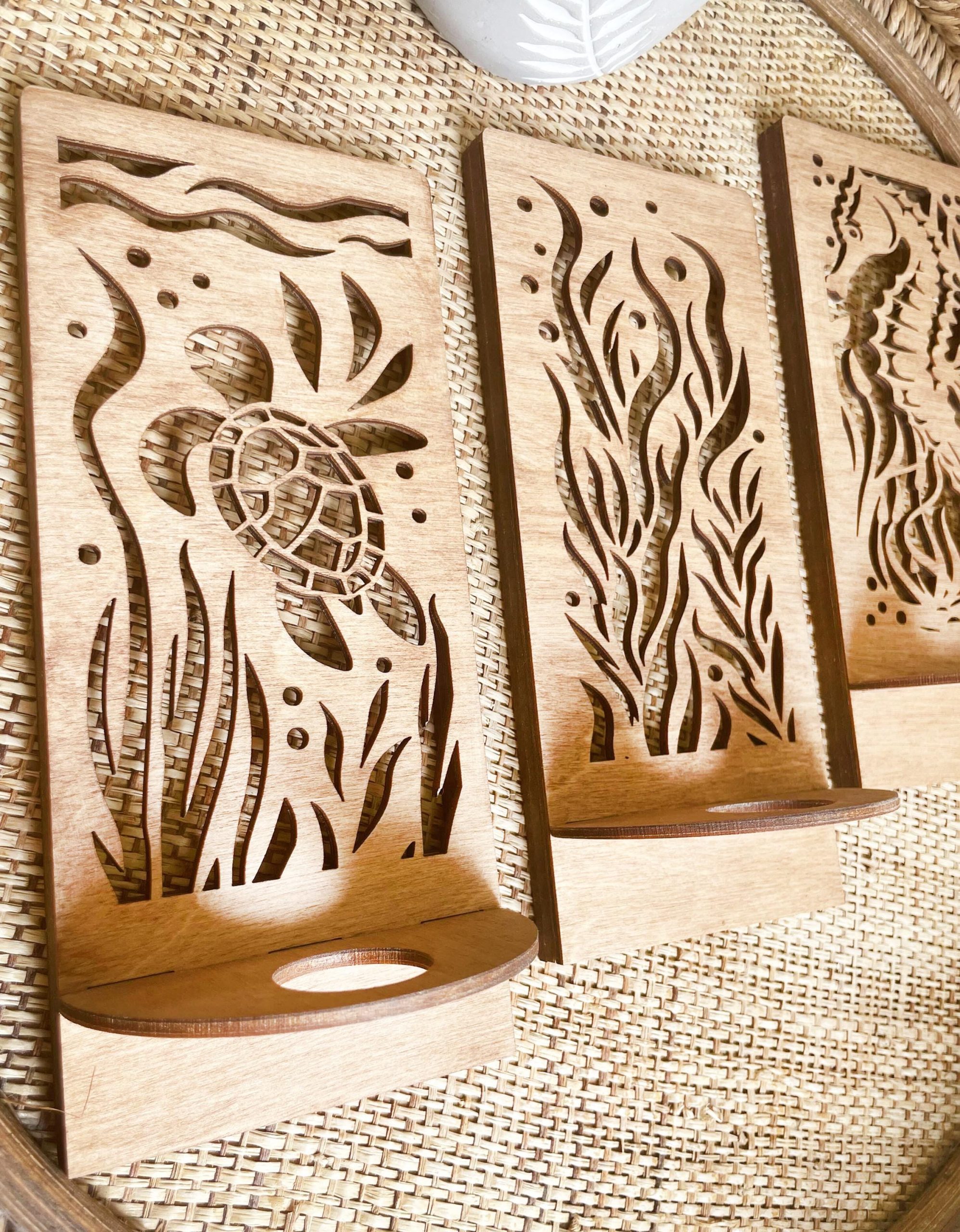Ocean Themed Plant Propagators, Beachy Ocean Vibes, Sea Turtle, Seaweed, Seahorse, Order One or Set, Choose Stain Color, Plant Cutting Vase